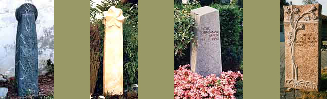 Jeder Stein wird individuell gestaltet. Im Gespraech mit den Hinterbliebenen versuche ich, das Wesen und das Leben des Verstorbenen kennen zu lernen. Der Stein kann, je nach Wunsch des Kunden, als Skulptur oder nur mit gestalteter Vorderseite angefertigt werden.